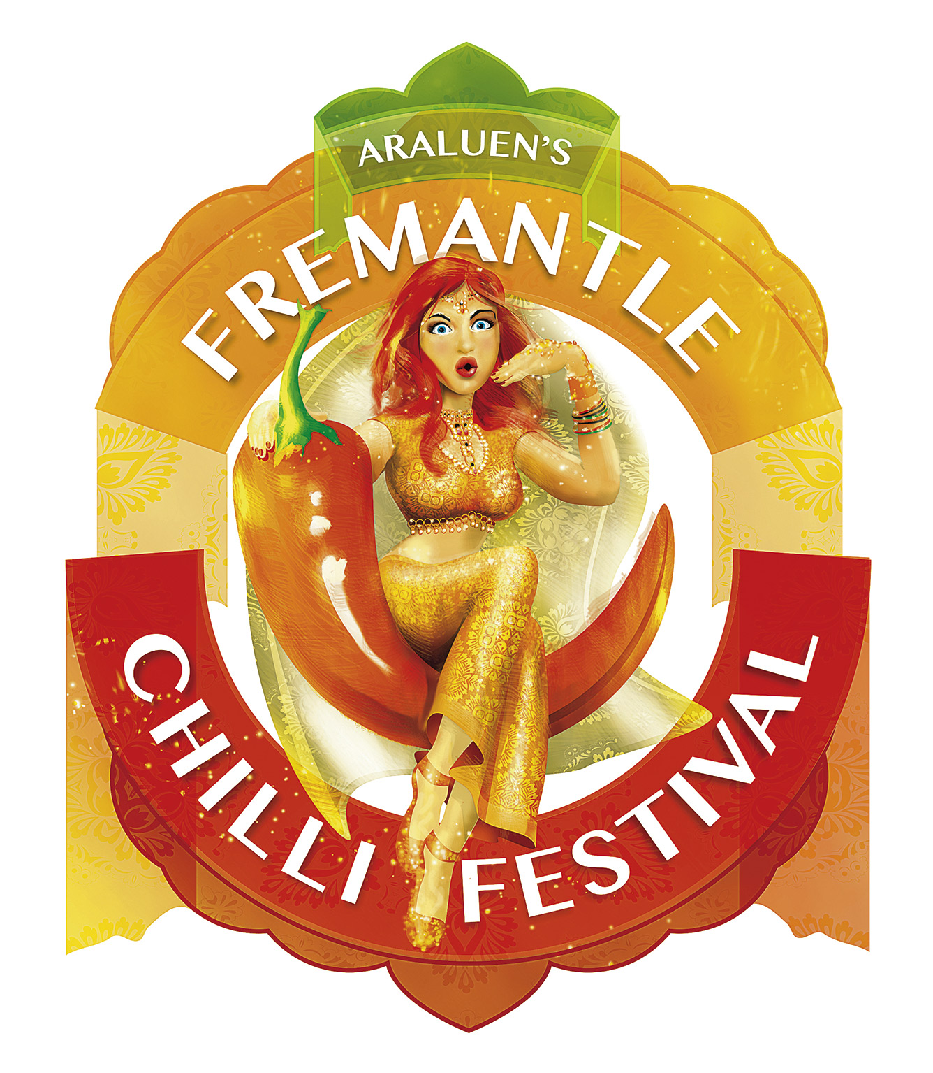 Last year we created Pepper, as the icon of Araluens Fremantle Chilli Festival. This year it’s a Bollywood theme, so I’ve redrawn Pepper with some Indian bling!
