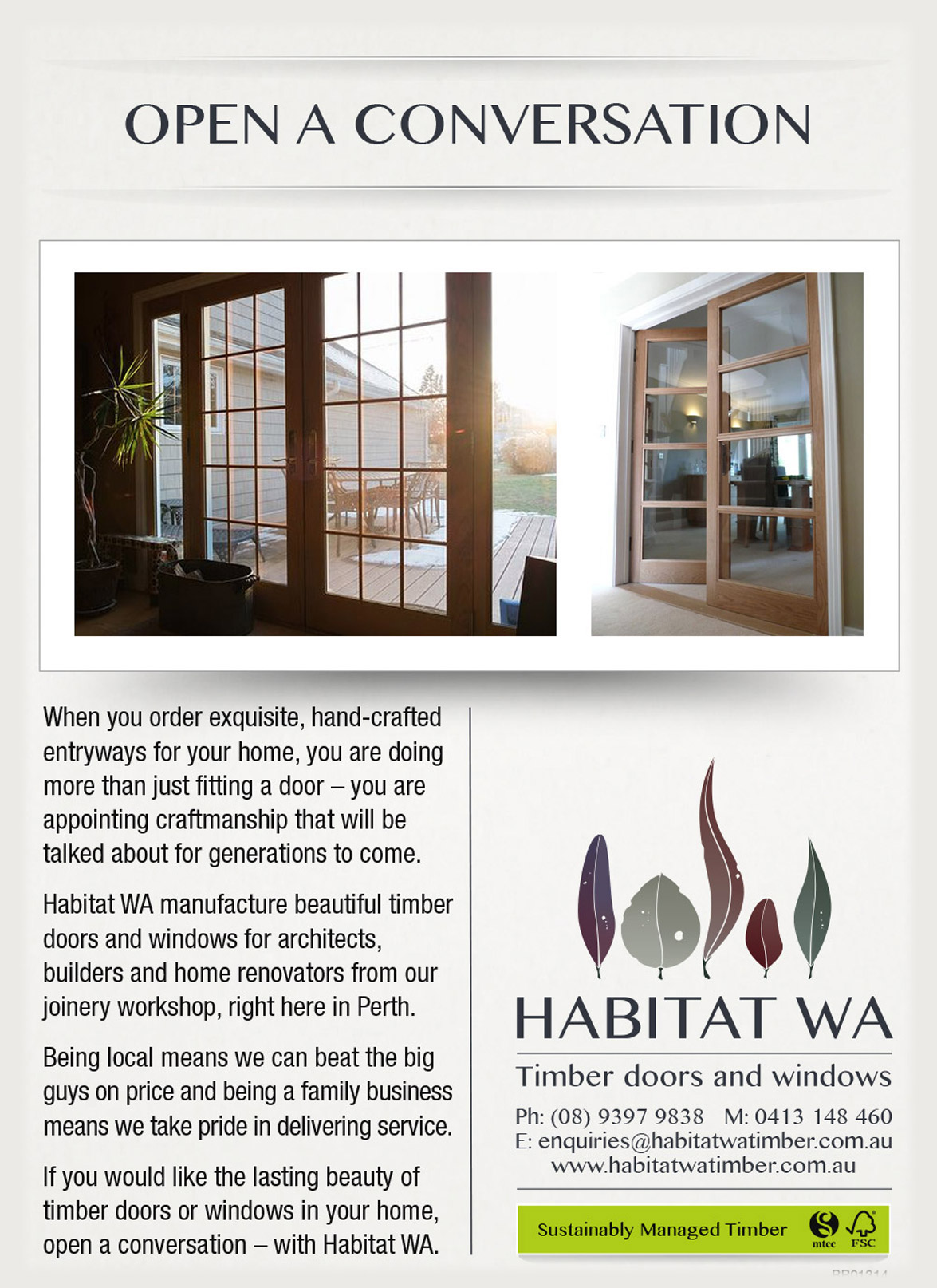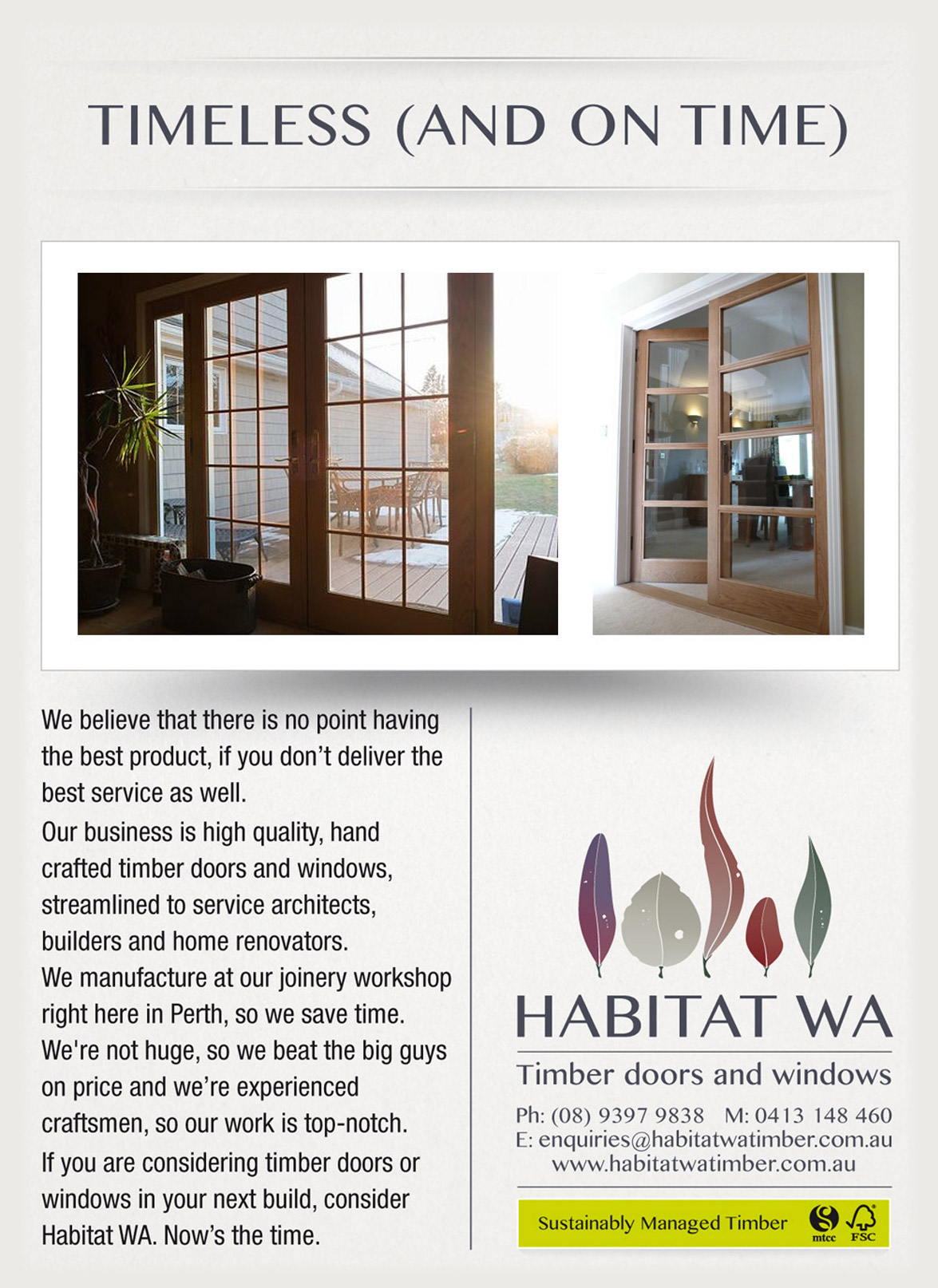 Habitat WA asked us to create a brand and advertising campaign for their new, up-market timber door and windows business.