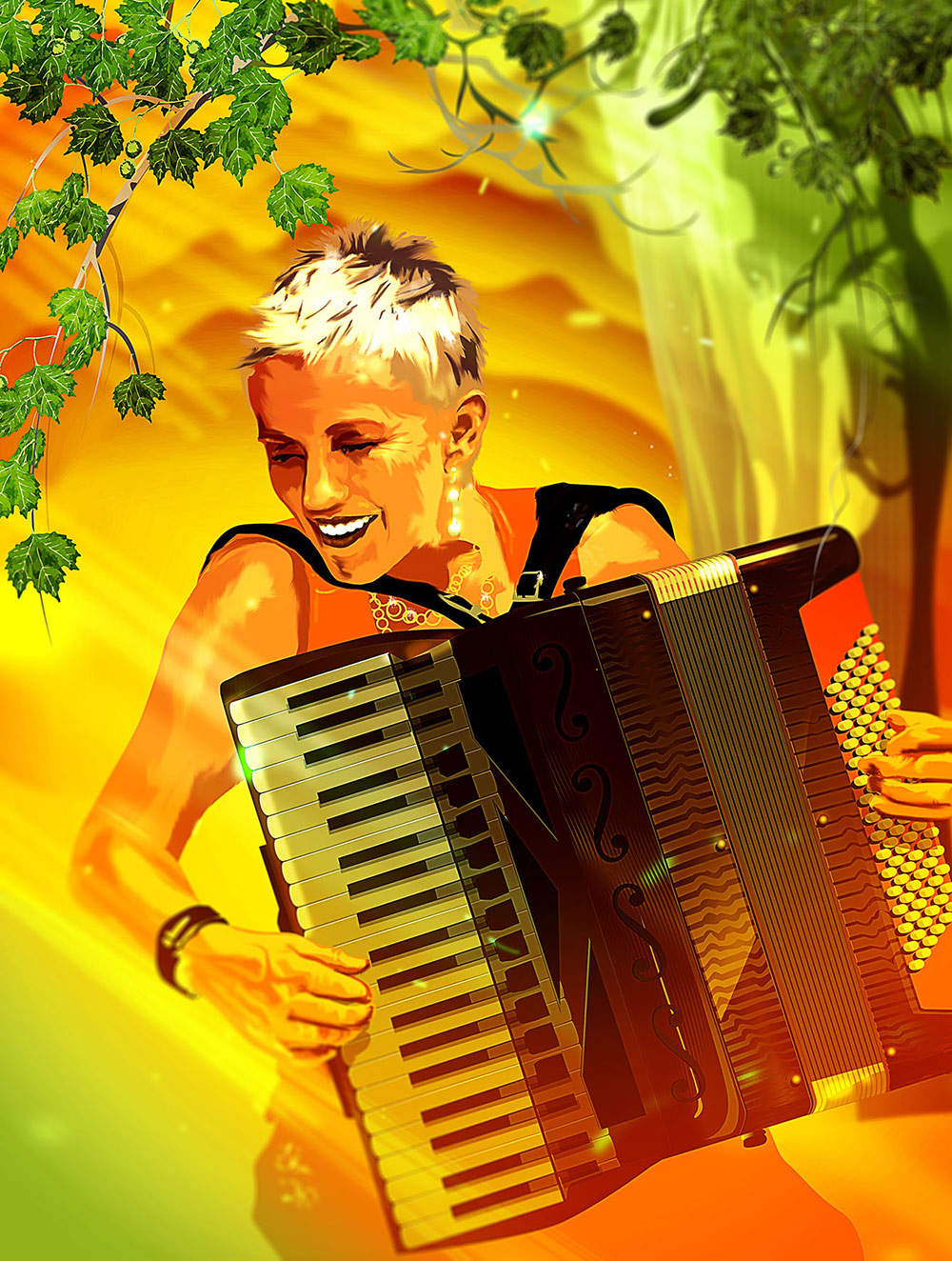 The City of Armadale asked us to create a press and poster campaign promoting their upcoming series of lunchtime concerts. I’ve just finished this illustration of jazz/gypsy/folk accordianist Cathie Travers.